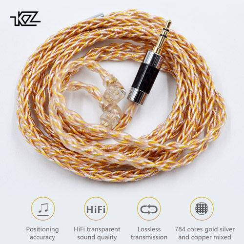 Cablu casti KZ CCA, Hibrid 784 placat cu aur, argint OFC si cupru 8 nuclee, Auriu