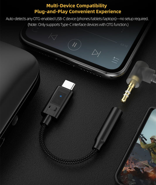 Amplificator de decodare DAC , KZ-AM02, adaptor audio USB C la 3,5 mm cu egalizator profesional in 4 EQ stage, Negru