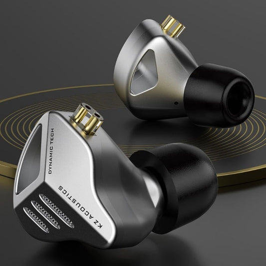 Casti KZ ZVX, cu dubla cavitate de 10 mm, Full Metal, super liniara dinamica 1DD, HIFI, ExtraBass, Sport, cu anulare a zgomotului, capete din spuma cu memorie, Microfon,Argintiu