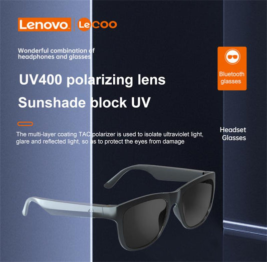 Casti/Ochelari de soare Smart Lenovo Lecoo C8, HIFI Wireless Bluetooth 5.0 EDR, Apel ,Microfon HD, UV400 Polarizati ,Negru